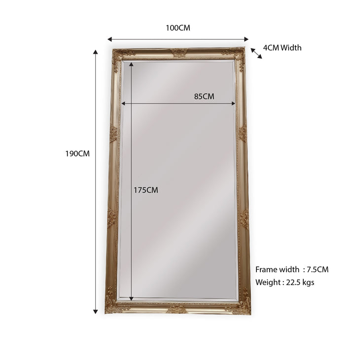 If you're looking for a mirror that combines elegance and sophistication, the French Provincial Ornate Mirror in Champagne - X Large 100cm x 190cm is an excellent choice. Its intricate design and high-quality materials make it a statement piece that will add character to your room while also serving its purpose as a mirror.