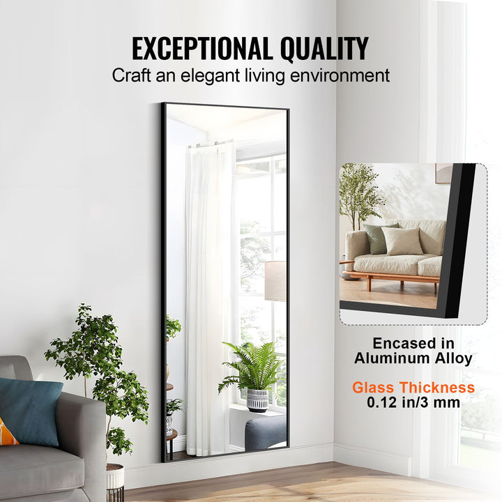 Our tall mirrors for wall are encased with aluminum alloy framing all around, providing not only robust durability but also solid protection for the mirror itself, enhancing its overall sturdiness. It also adds to the aesthetic appeal, making the mirror not just practical but also a piece of home decor art.