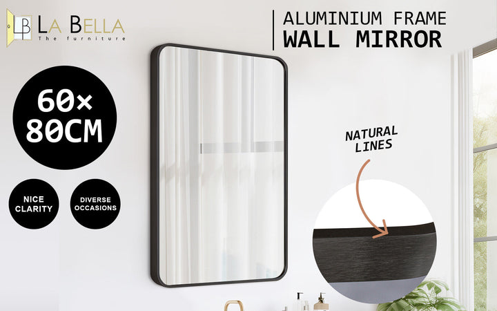 La Bella Wall Mirror Rectangular Aluminum Frame Makeup Decor Bathroom Vanity 60x80cm - Black