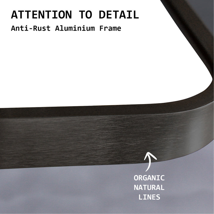 The mirror is stylish and neat in design and comes with a 2.8cm thickness slender aluminum frame that is sure to capture the attention of all. Plus, its curved lines all around will become a central focal point in any room which makes spaces feel more inviting and relaxing.
